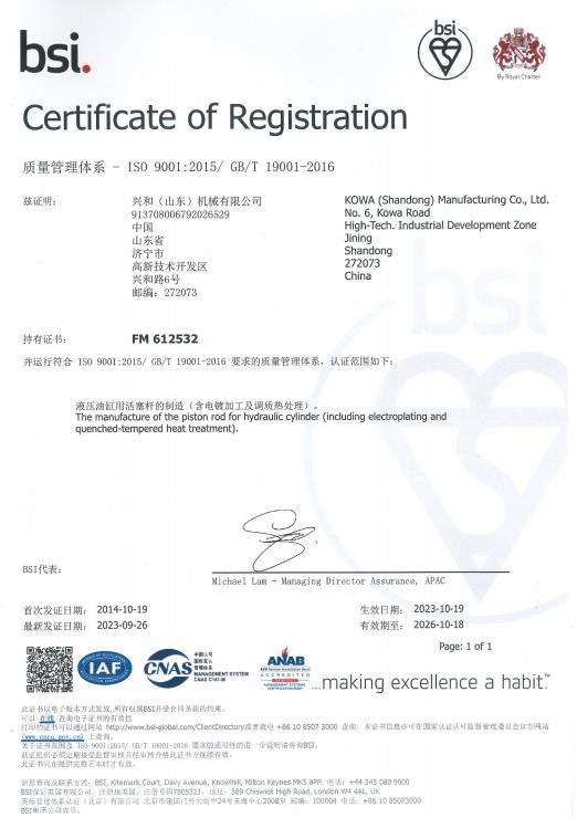 興和(山東)機(jī)械通過(guò)科技創(chuàng)新,不斷提高產(chǎn)品性能,爭(zhēng)做活塞桿行業(yè)的前鋒者!